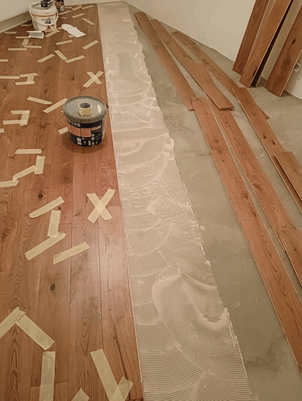 We remove old adhesives and debris thoroughly. We apply leveling compounds where needed for a flat surface. This step prevents future squeaks and movement.